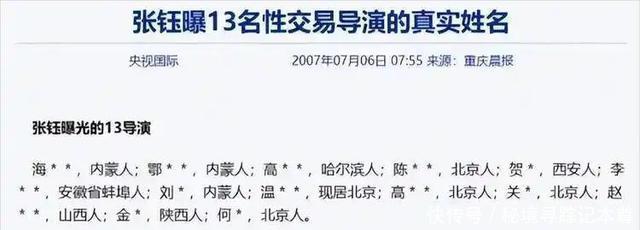 在2003年娱乐圈一位18线艺人张钰曝光了和自己有性交易的13位导演的姓名, 她表示自己朋友一起去参加饭局,在饭局上导演明确表示, 只要两人发生关系,张钰就能够得到自己想要的角色。